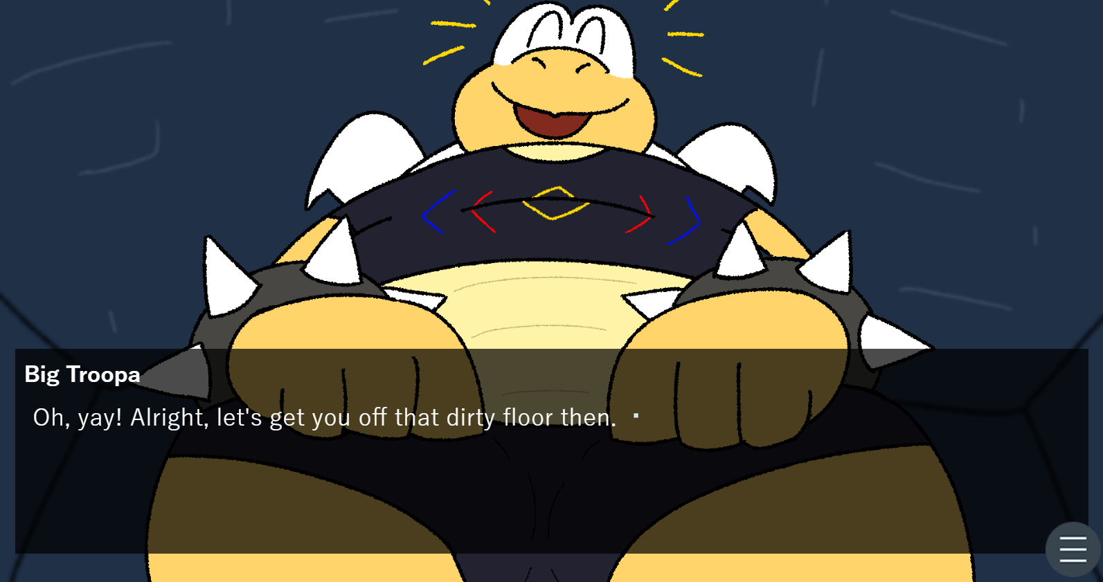 A visual novel about the worst of Bowser's army- a newbie troopa, a sledgeless Sledge Bro., an anxious wreck of a Dry Bones, and KJ, along with their underachiever of a leader- defending their fortress against a robot army, of all things.